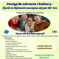 Gminny Ośrodek Kultury w Sadkach zaprasza seniorów z powiatu nakielskiego do udziału w projekcie objętym grantem pt. POCIĄG DO ZDROWIA I KULTURY- Życie w Dębowie zaczyna się po 60-tce, w ramach którego utworzony zostanie klub seniora dla osób 60+. Rekrutacja trwa do 12.02.2026 r. do godz. 16.00. |